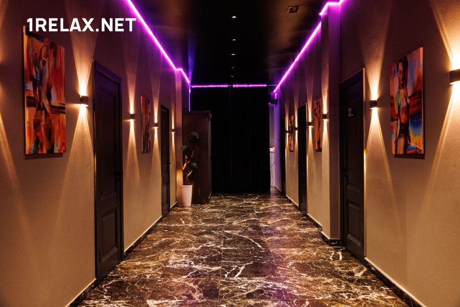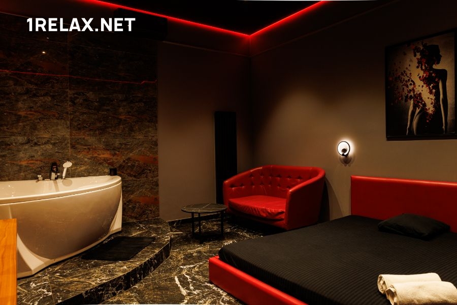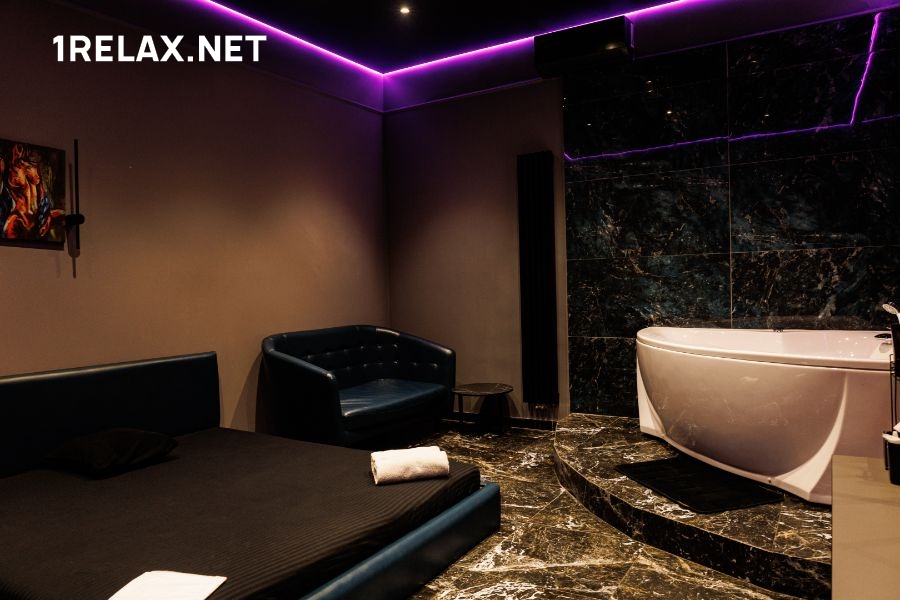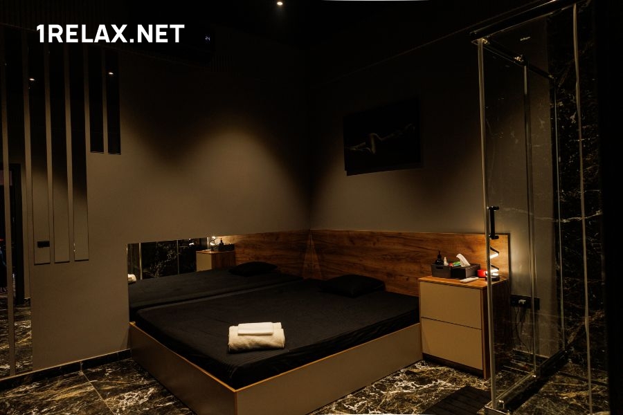 К услугам гостей приготовлены пять просторных комнат, оформленных в теплых приглушенных тонах. В помещениях есть все, что нужно для эксклюзивного отдыха — удобные кровати, джакузи или душевые, мягкая мебель, кондиционер, приятная подсветка и шест для стриптиза.